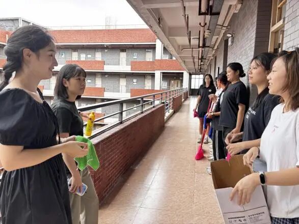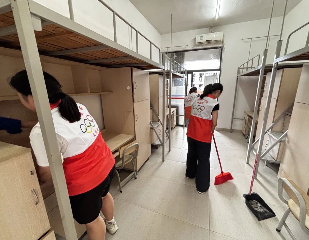 为深入贯彻习近平总书记关于教育的重要论述,全面贯彻党的教育方针,进一步践行“三全育人”“五育并举”的教育方针,落实《广州新华学院推进“一站式” 学生社区综合管理之“宿舍环境美化专项行动”工作方案》等文件精神,把劳动教育融入学校人才培养全过程,推进学校文明寝室创建工作,引导学生养成爱护宿舍的良好习惯,营造整洁有序的学习和生活环境,培养德智体美劳全面发展的社会主义建设者和接班人,体育系团总支积极响应校团委开展第五届“以劳育美·清晨季”宿舍清洁活动。在体育系团总支副书记李晓楠、辅导员李丽丽的带领下,全体团总支及2024级同学于2025年9月10日对体育系新生宿舍进行了全面打扫。