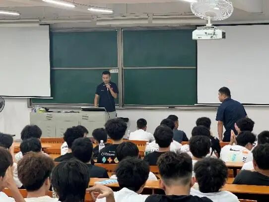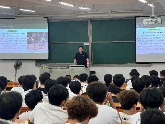 在定静2A201会场,待领导与老师们完成亲切的相互介绍后,社会体育指导与管理、休闲体育两大专业的深度解读环节随即展开。各专业负责人轮番登台,为新生勾勒清晰的学业与成长蓝图:社会体育指导与管理专业副主任胡美,从学科定位到核心模块,系统阐释了专业的培养逻辑与学习重点;休闲体育专业副主任张明则在详解专业知识体系之余,特别聚焦轮滑、飞盘、攀岩等充满活力的特色课程,让新生直观触摸到专业的实践魅力。与此同时,各位老师还结合当下行业发展动态,深入分析了两大专业的优质实习资源与多元就业路径,为新生搭建起从校园学习通往职业发展的清晰桥梁。