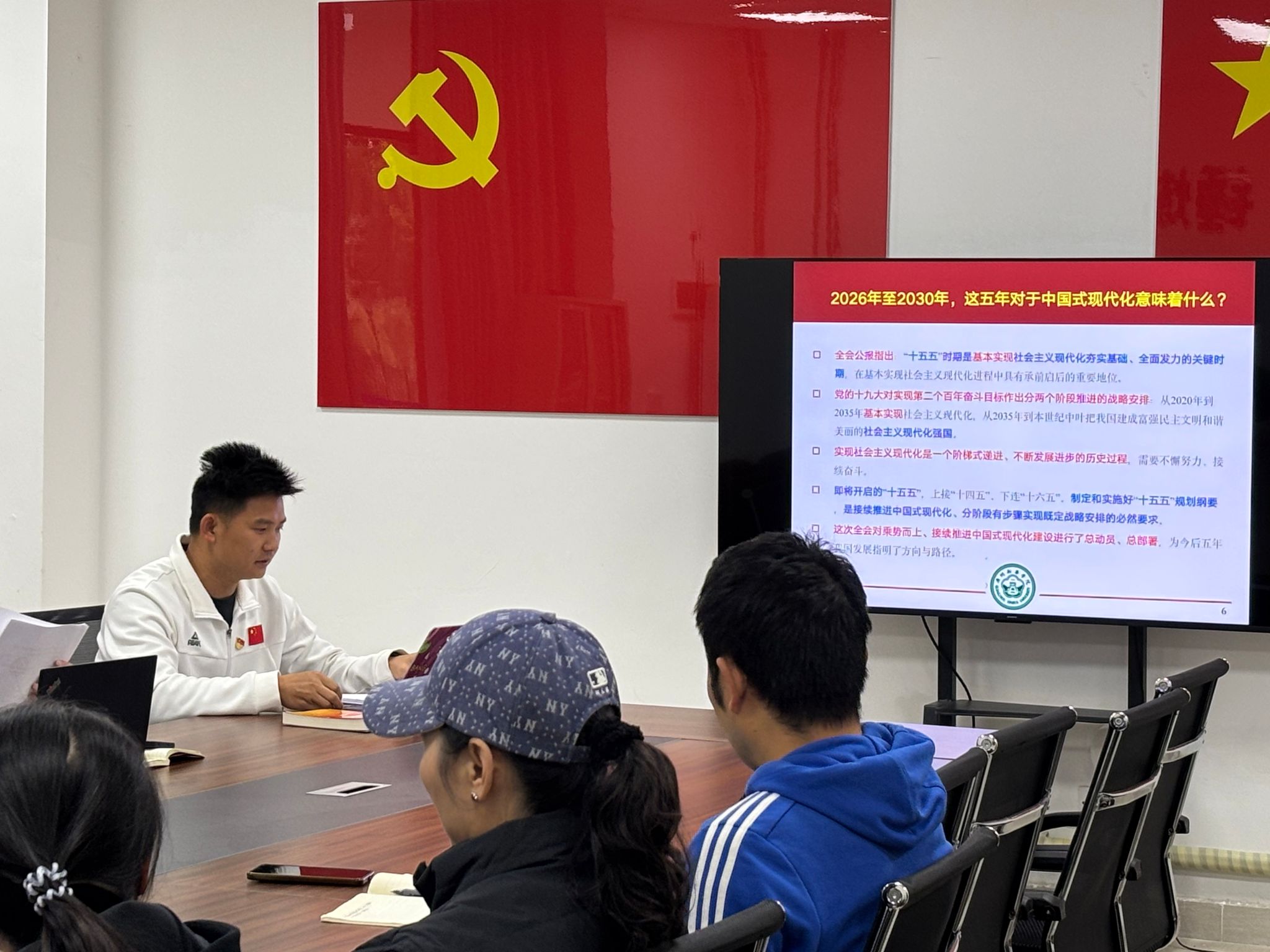 为深入学习贯彻党的二十届四中全会精神,推动中国式现代化理念与体育教育事业深度融合,体育系直属党支部于2025年12月26日上午在体育馆会议室进行了二十届四中全会精神暨中国式现代化专题材料学习,宣讲由体育系直属党支部副书记丁建敏领讲学习,引导全体党员凝聚奋进力量。