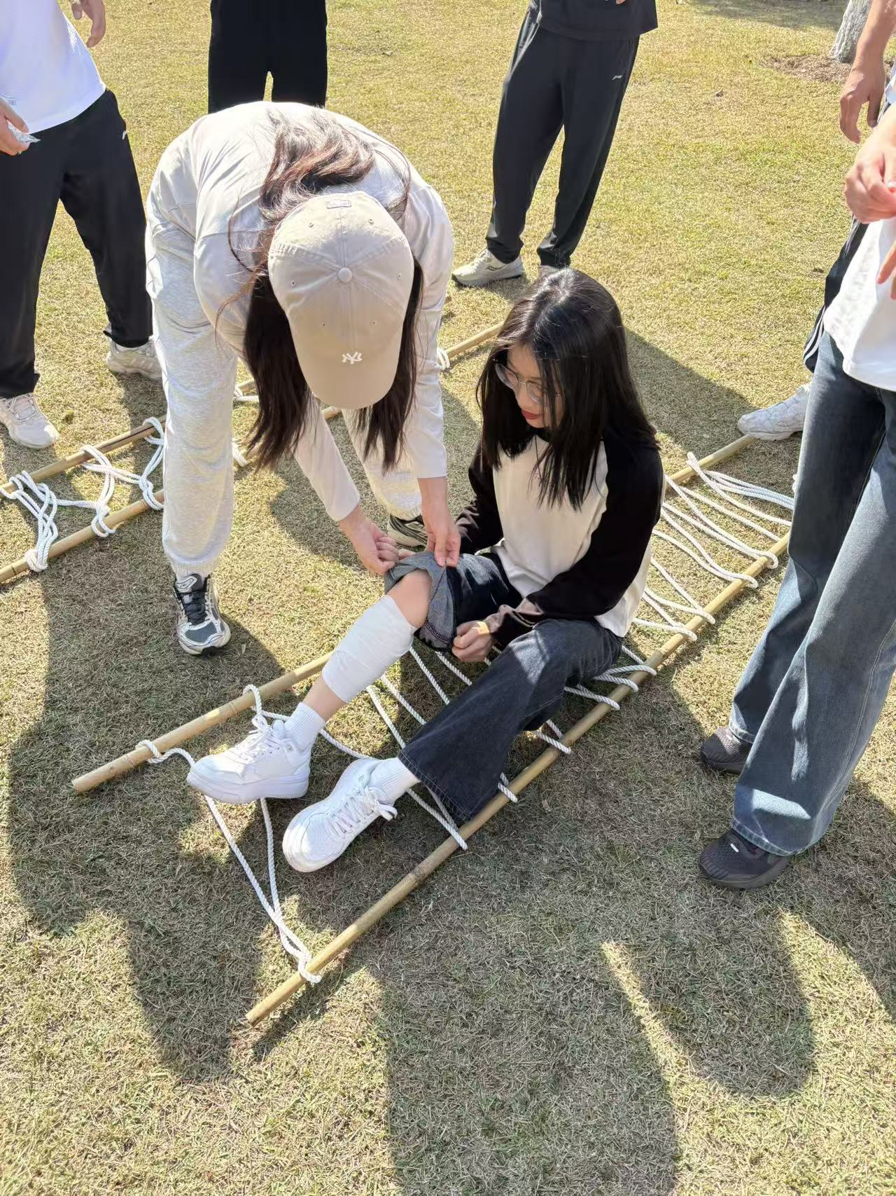 12月21日上午,红色团建活动在激昂的氛围中拉开帷幕。活动以“团结协作、共筑初心”为核心,设置了同时抛接球、历史重要事迹图片拼图、团队协作制作担架并运送伤员等多个特色环节。在同时抛接球环节,各小组成员凝神聚力、默契配合,精准把控抛接节奏,展现出极强的团队协作能力;历史重要事迹图片拼图环节,大家分工明确、互帮互助,在拼接历史画面的过程中,再次重温了革命历程中的关键节点,深化了对红色历史的理解;团队协作制作担架并运送伤员环节,各小组充分发挥体育专业优势,快速设计制作担架,小心翼翼地完成伤员运送任务,切实体会到革命年代军民同心、攻坚克难的艰辛与不易。整个团建活动将红色教育与体育特色深度融合,在欢声笑语中凝聚了团队力量,锤炼了奋斗精神。