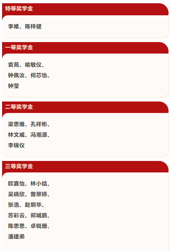 我系在接到院通知后迅速行动起来,积极开展本次优秀学生奖学金评审工作,积极向系学生宣传奖学金评审办法及相关文件精神,保证了评审工作的公开、公平、公正。系奖学金评审小组,对提出申请的学生的个人情况进行严格审核,综合考察学生的学习成绩、政治思想、参加社会工作及主要获奖等情况。经初步评选后,推荐: